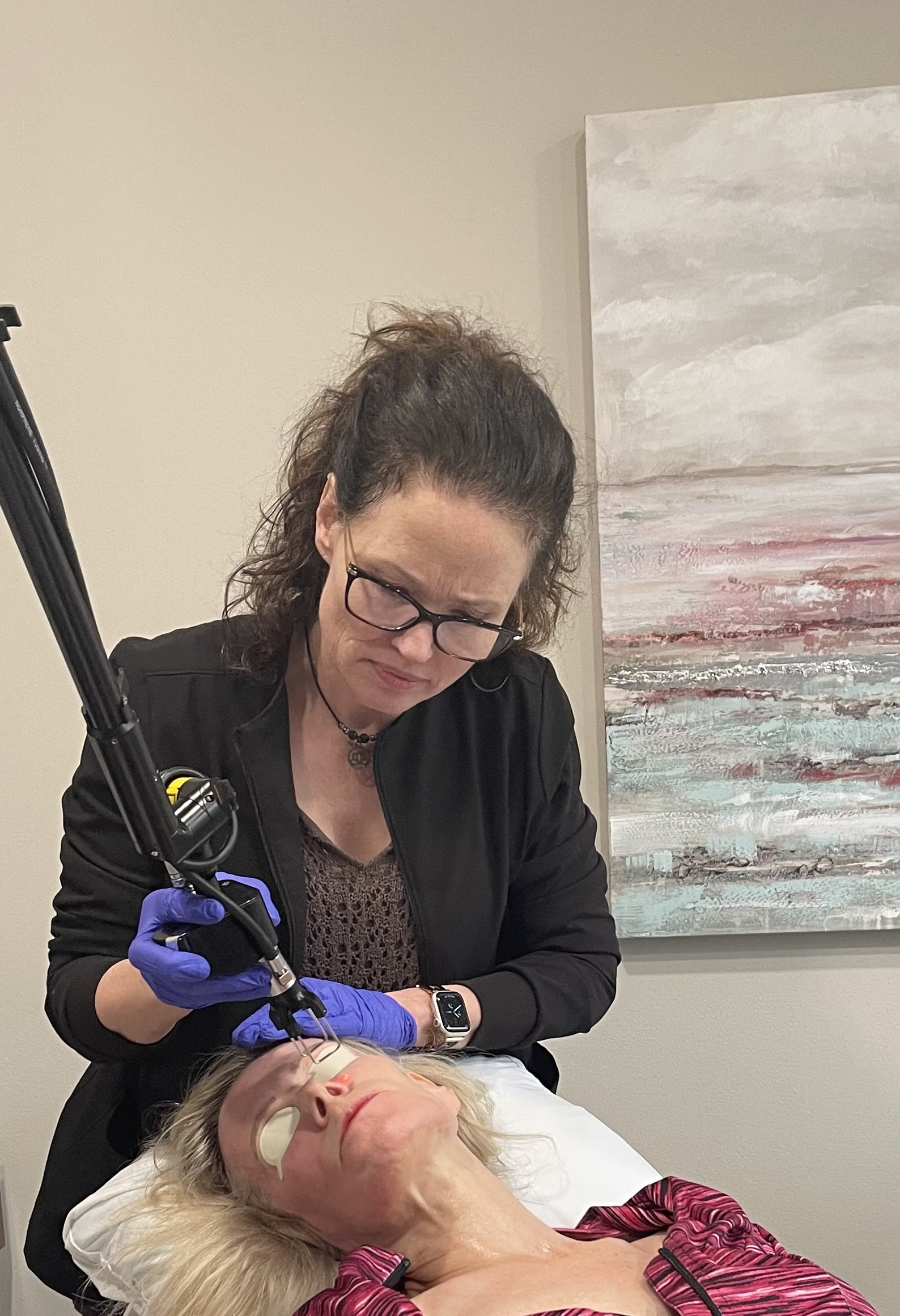 We apply a topical numbing anesthetic to your skin prior to the procedure. The treatment takes approximately 30–60 minutes, depending on the areas being treated. Many patients describe the sensation as similar to being snapped with a rubber band combined with a feeling of heat.